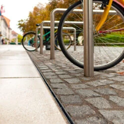 ACO Raindrain Brickslot Drainage Channel Assembly with Slotted Galvanised Steel Grating 1000mm B 125. Manufactured from Vienite, ACO’s high strength recycled polymer concrete, ACO RainDrain Brickslot B 125 is suitable for vehicle traffic up to Load Class B 125. The high quality ACO RainDrain Brickslot B 125 channels interlock, allowing for quick and easy installation. The channel comes complete with an offset slotted grating, ideal for block paving up to and including 60mm.