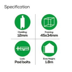 The 2.4m x 1.8m Norfolk double door shed has an Apex roof allowing more height inside the structure. This shed is constructed from tongue and groove shiplap even the floor and roof! Shiplap is advantageous as it allows water to run off it, this can increase its waterproof ability and will prevent draughts from penetrating between the boards. This shed is supplied with quality polyester roofing felt.The double doors are fully framed and braced, with three hinges per door. This shed has two windows side-by-side which allow in lots of natural light. The window side can be either the left or the right-hand side. The framing on this sturdy shed is 45mm x 34mm. The door locks by lock slide bolt. We recommend treating timber sheds within 6 months of installing. As with all timber products, regular treatment and maintenance is advised. Remember that you need a good solid base for your shed, check out our advice page for more info.