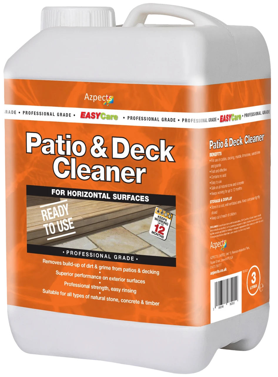 Effortlessly remove built-up grime from patios and decking. Patio & Deck Cleaner is a professional grade concentrate that is a fast and effective way of removing a heavy build-up of the most stubborn dirt and grime from paving, driveways and decking. This multi-purpose cleaner is also suitable for fences, sheds and other concrete, stone and wood items, such as ornaments and garden structures.
