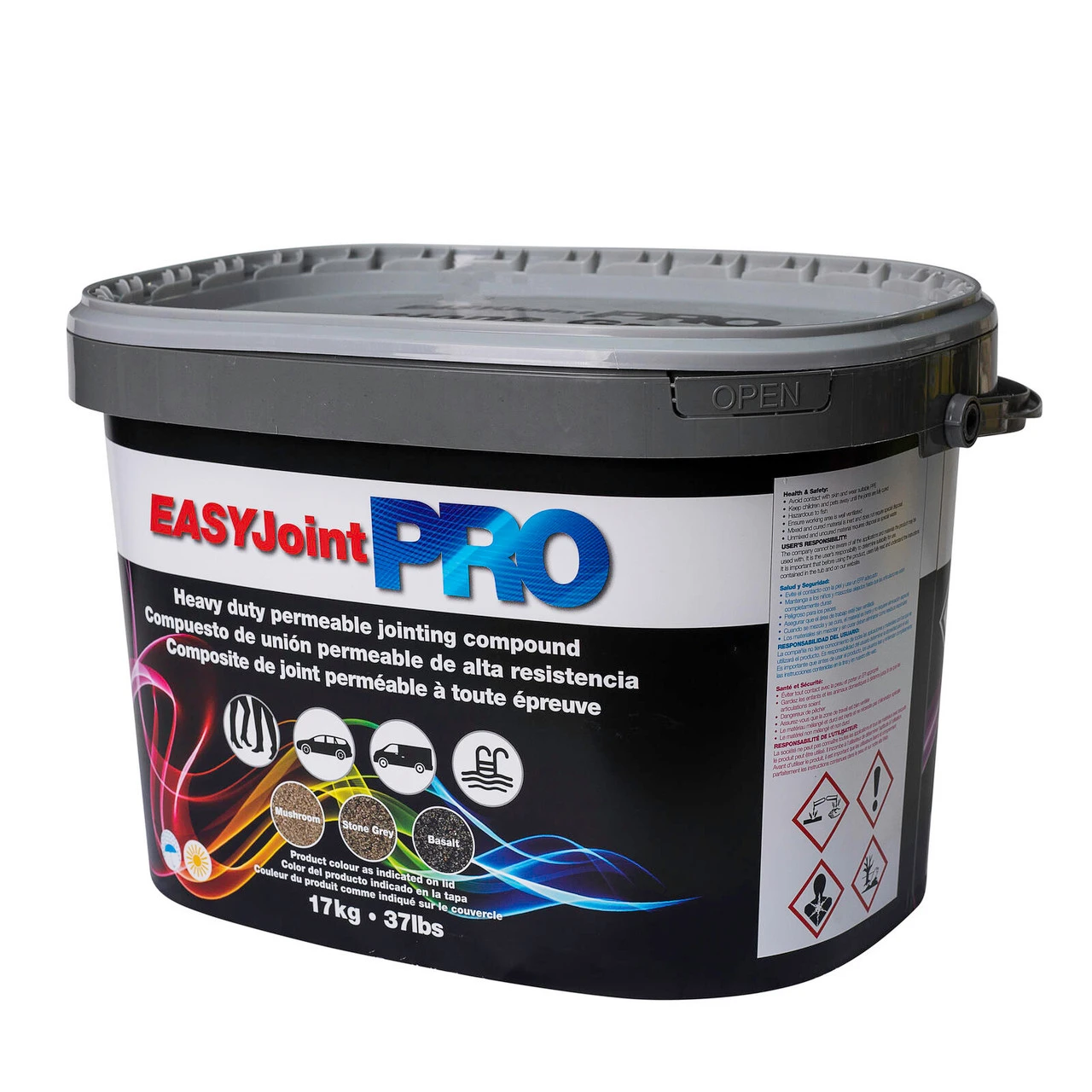 A tough jointing compound for patios, paths and driveways. EASYJoint PRO is a tough jointing compound for patios, paths and driveways. The two-part epoxy formula provides extra strength and durability with a smoother finish. EASYJoint PRO is a two-part product where a resin is mixed with coated sand before use. EASYJoint is a single component compound. EASYJoint PRO can be used on any paving type. However, its strength and tolerance to water make it most suitable for driveways, commercial areas, areas with poor drainage and swimming pool terraces. Light rain is not a problem however, prolonged heavy rain may weaken the epoxy and reduce its strength. It is recommended not to use the product if rain is a possibility. Areas should be covered if rain occurs before the product has cured. Unlike standard EASYJoint, EASYJoint PRO does not require any specific site conditions. Once set, the joints are chemical and water tolerant.