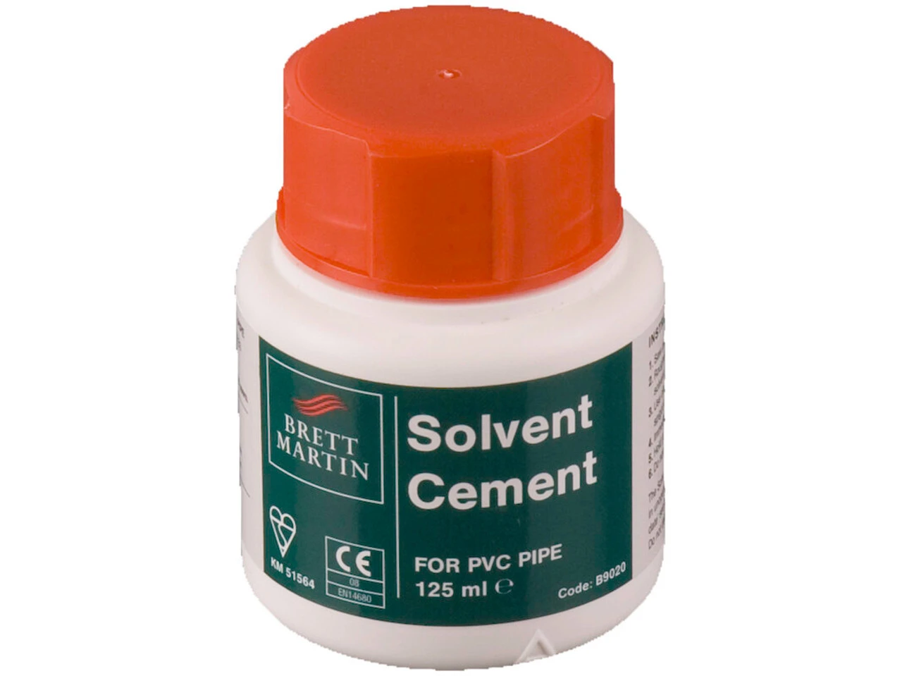 Brett Martin Solvent Cement for PVC Pipes. Utilised in the joining of pipework and fittings. Brush in lid can be used to apply the solvent cement to the target area. Product is manufactured in the UK and is CE Marked.