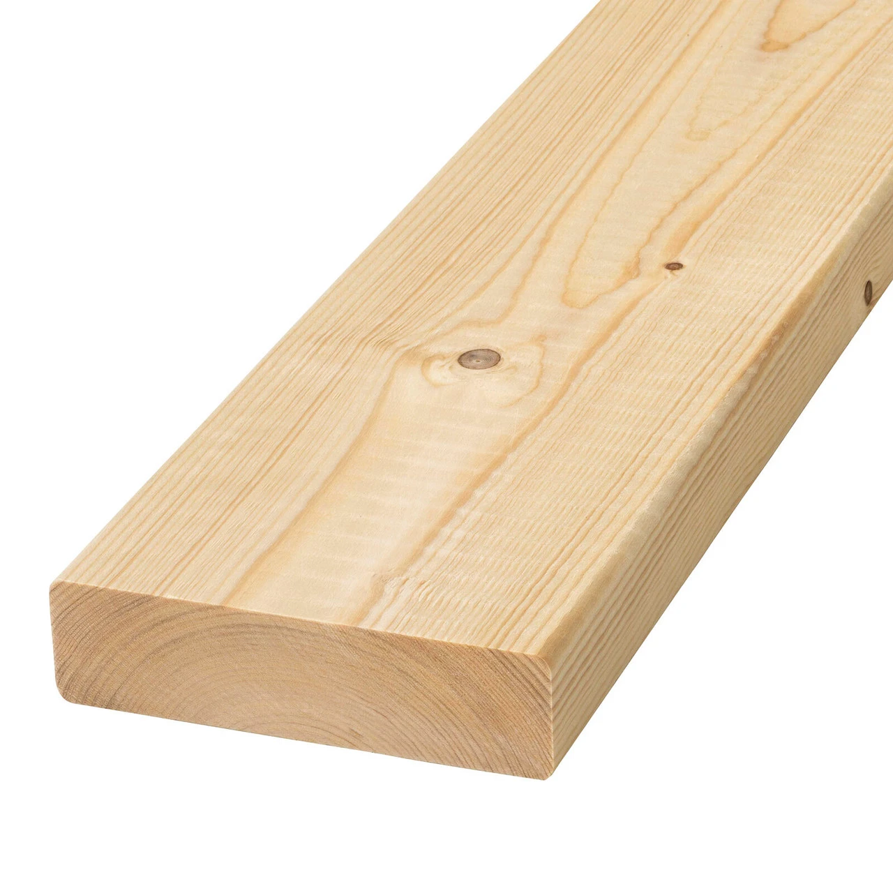 Treated C24 is a structural timber that’s commonly used for stud walls, roof and floor joists, and structural joinery. The use of C24 grade timber, which has a smaller cross section, allows for higher loads, and longer spans. C24 grade has fewer weaknesses and knots than C16, so is stronger with a higher point load. It is machined to have rounded edges, smooth faces and sides, for a more uniformed piece of timber. It is also kiln dried to minimise moisture content and improve strength and stability, as well as pressure treated with preservatives to improve rotting resistance.