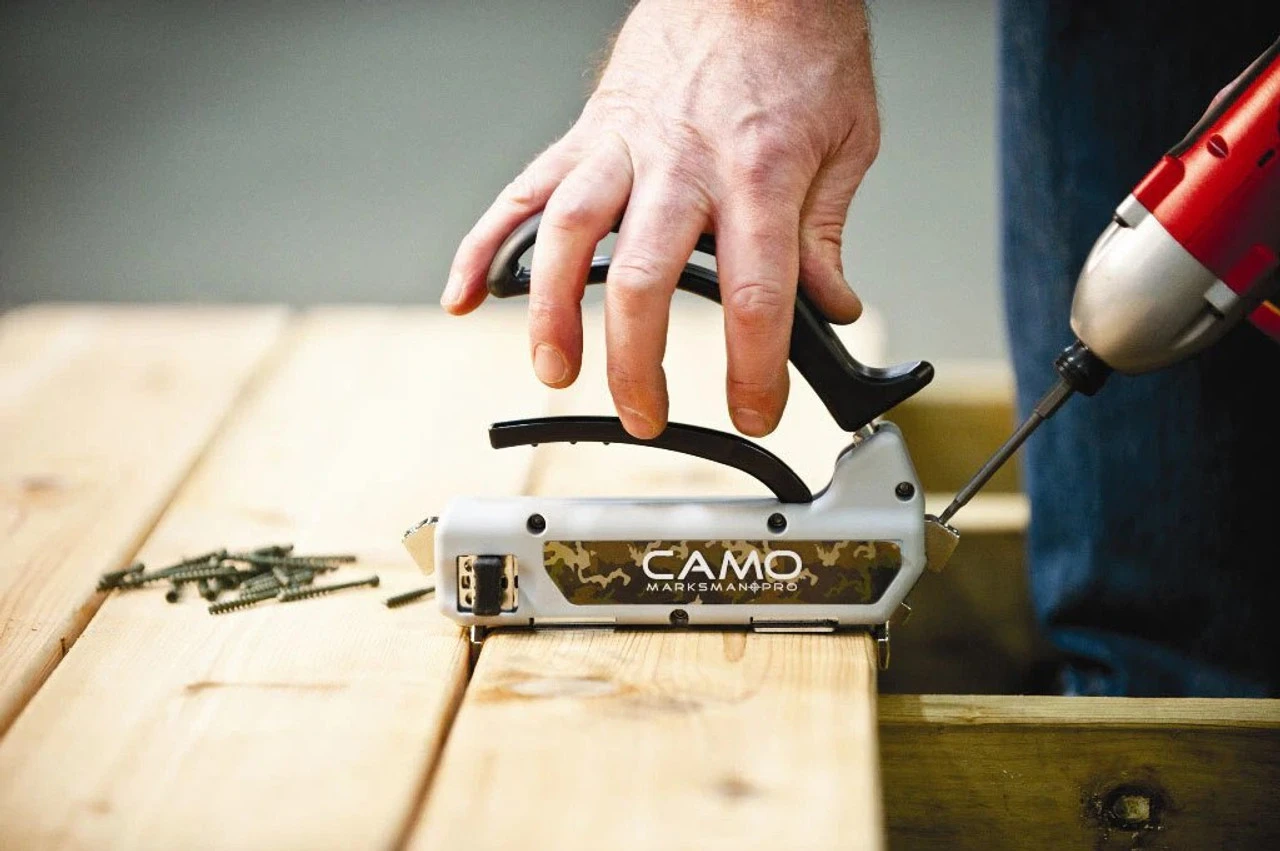 The Narrow Board Marksman Pro from CAMO is a heavy-duty contractor grade tool that is used to easily insert hidden deck fasteners into the side of any wooden decking that is between 80 and 125mm wide, including PVC, composite and all hardwoods such as oak and balau. The tool includes a 5mm spacer to ensure a uniform gap between each plank of decking. No pre-drilling is required (unless you are using stainless steel screws with hardwoods such as Ironwood, IPE, Tigerwood or Cumaru which we do recommend pre-drilling), and you don’t need to press down too hard when using, simply let the tool do all the work for you. The CAMO range is barefoot approved, so you don’t have to worry about your family’s feet catching any sharp screw edges during the summer months. Please note that only official CAMO deck screws are suitable for use with the CAMO Marksman Pro as they have been engineered to work together. Using products from other brands may not produce the highest-quality results.