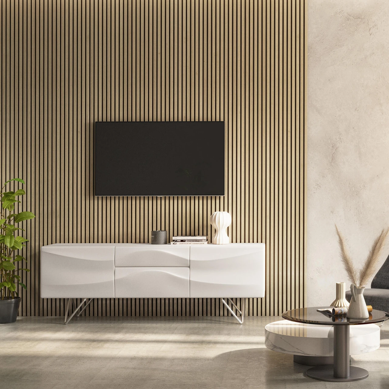 These striking acoustic slat wall panels in Light Oak break and absorb sound waves to create a stunning and tranquil space for you to relax. Use them to accent different walls and let the warmth of natural wood bring a touch of elegance to any design scheme