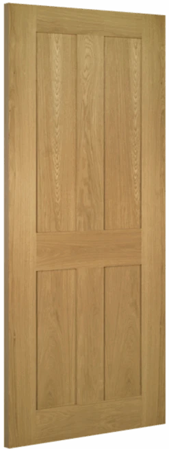 Suitable for any room in the home, the Eton Solid Oak door is simple and chic. The straight-cut edges of its four panels are characteristic of the shaker style, whilst a slight size difference between the two pairs of panels adds a little piquancy to the plainness. The Eton Glazed Oak door features two panes of clear, toughened glass in place of the top pair of panels. Use hardwax oil on this unfinished oak door to emphasise the grain and promote its natural characteristics.
