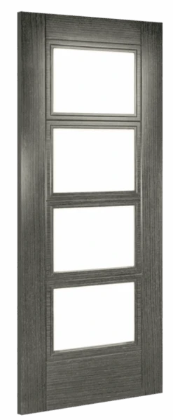 The Deanta Montreal is a finely made, glazed fire door that is perfect for modern houses. The door combines the adaptability and breathtaking integrity of wood composite with a smooth surface that is stain resistant and simple to maintain. The deep dark grey colour of the ash veneer emphasises its solidity, while four panes of clear toughened glass bring it to life. With its excellent installation dimensions and design elements, this is a modern door that will add a wow factor to your house. This Fully Finished Dark Grey Ash Glazed Fire Door is suitable for places that require some light to pass through, such as offices, kitchens, and dining rooms. The door also gives up to 30 minutes of fire and smoke protection. Use this door to give warmth, charm, and individuality to any interior setting while creating an exquisite atmosphere.