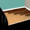 The American Black walnut floor ranges from a deep, rich dark brown to a purplish black and the sapwood is nearly white to tan. The contrast between the heartwood and the sapwood colour makes it perfect for any home. The grain is mostly straight and open but some boards have a burled or curly grain. The grading on this floor is B/C/D which means there are black repaired knots and small repaired splits.