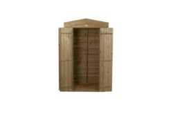 This Tall Garden Store from Forest provides 750 litres of storage capacity in a small area. With a roof height of just under six feet, it’s perfect for keeping long-handled gardening tools, children’s toys, or folded furniture neat and tidy. The relatively small footprint means it is ideal for positioning against a wall or fence and will blend attractively into any garden. The felted Apex roof keeps the store weathertight, and the floor is mounted on pressure-treated bearers to keep it off the ground and dry. The double doors are fitted with a plate hasp and staple latch that can be securely fastened with an additional padlock. The store is made from traditional pressure-treated overlap panels and finished with smooth-planed barge boards. The front has attractive, smooth-planed interlocking Shiplap Tongue & Groove panels.