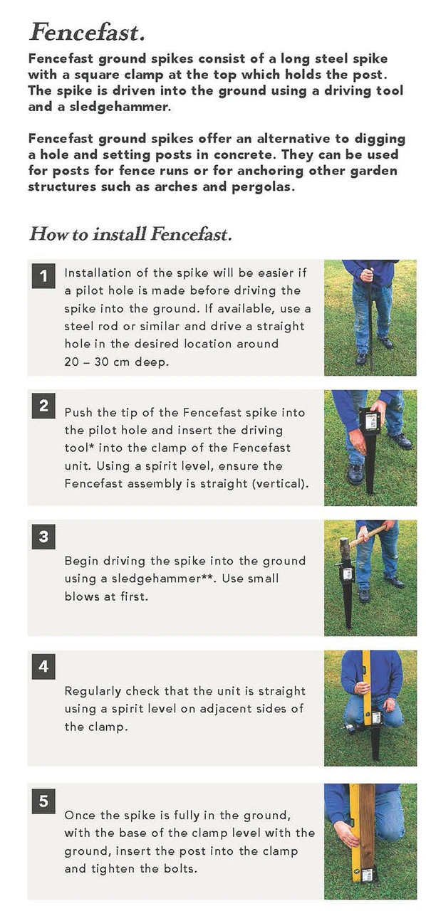 The Easy-Fit Fencebase is a flexible post support for use on materials including decking, patios, and concrete that can be drilled to take expansion bolts. Without having to dig holes or use concrete, it is the perfect technique to secure fence posts and the legs of garden constructions (such arches and arbours).