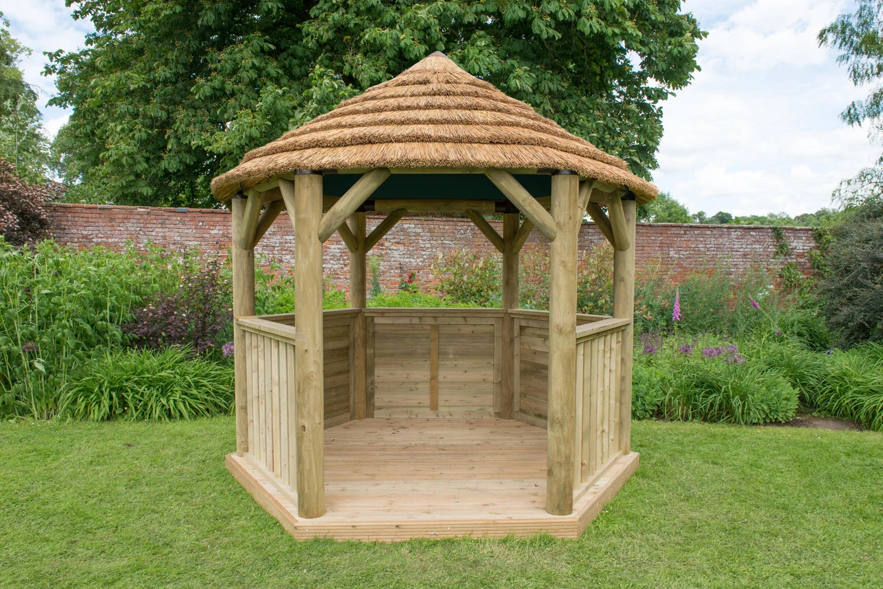 Forest Garden Hexagonal Thatched Roof Gazebo & Cream Lining