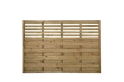 Kyoto Panel is a decorative panel with a contemporary feel and clean, modern lines.This quality decorative panel features smooth-planed horizontally mounted boards with a grooved profile. These are arranged either side of mounting battens in a staggered pattern, mounted in a high quality rebated frame and finished with an attractive slatted top section. The panel has heavy duty mortise and tenon jointed framework for a superior build.Made from FSC certified timber from sustainable sources and Pressure Treated to give a 15 year Anti-Rot guarantee. The panels can also be used without gravel boards. This smooth-planed decorative panel is best complemented when mounted to smooth-planed fence posts.