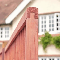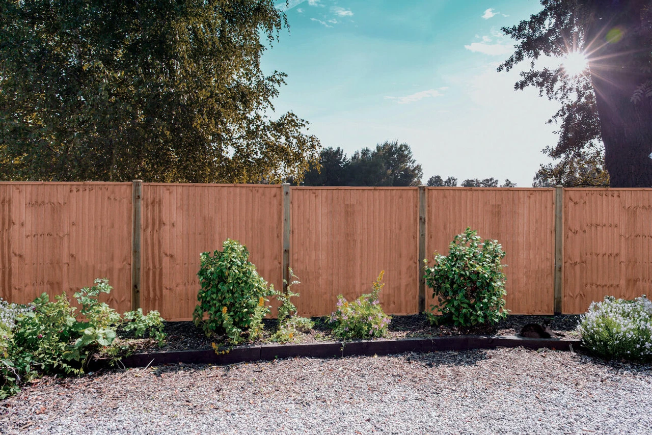 Grange Superior Featheredge Dark Brown Fencing. The twin waney edge slats are fixed into a completely mortise and tenon jointed rebated frame, making it stronger than earlier standard lap panels.