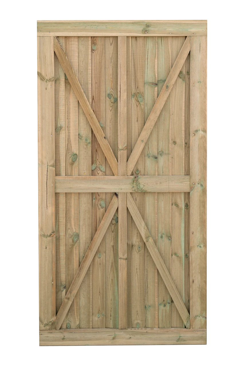 Adopting the build characteristics of the Superior Featheredge panel, this new and improved gate is both strong and attractive. The Grange Fencing Featheredge gate is a beautiful green pressure treated gate that will be admired for many years to come. The decorative arched top gate is composed of pressure-treated wood, which ensures its durability. Gate hardware is available separately.