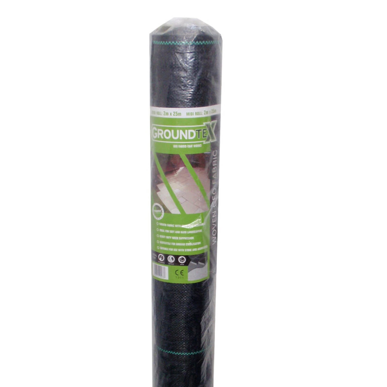 Groundtex woven geotextile is a multi-purpose woven geotextile fabric ideal for weed suppression and ground stabilisation in both soft and hard landscaping schemes. The tough geo fabric is stretchable which ensures high resistant to the damage during construction and chemicals that may be in the soil. This fabric successfully meets the requirements for use above as a heavy duty weed barrier alongside below ground usage as stabilising and separating geotextile in groundwork. Groundtex is typically used for ground stabilisation as a separation/reinforcement layer or as a heavy duty weed suppressant in landscape, building/construction, groundworks and civil engineering. It can be used in a number of applications including: Roads and driveways, Car parks and areas of hardstanding, Paved areas, Erosion control systems