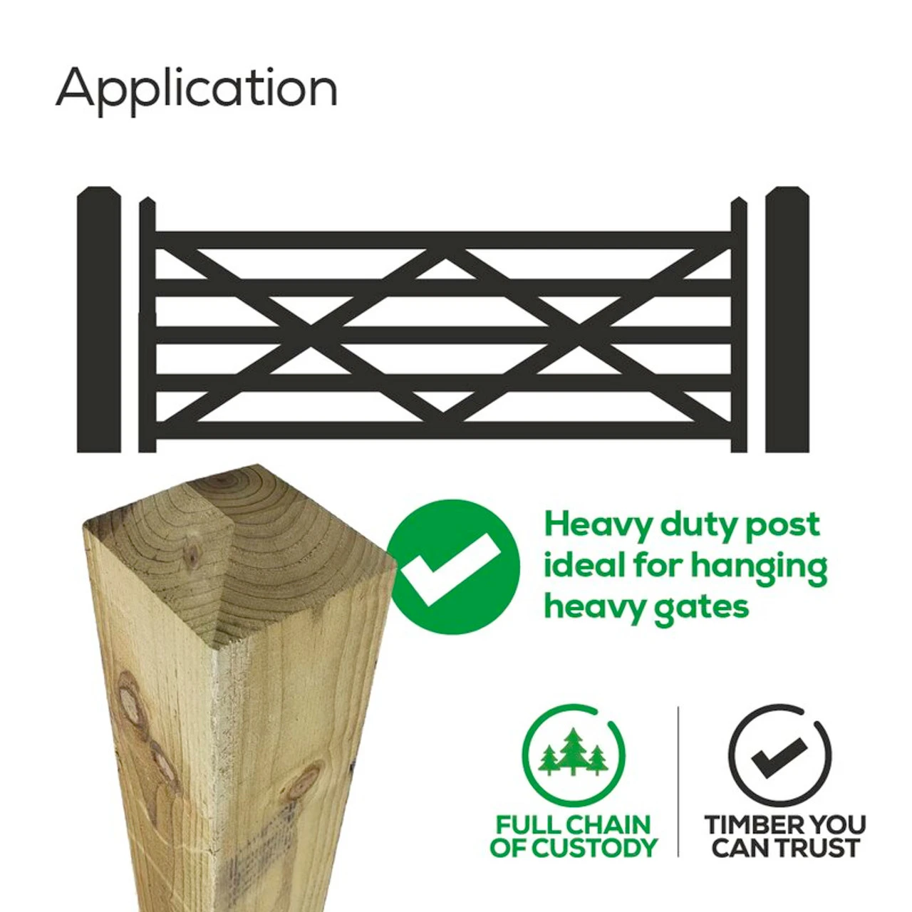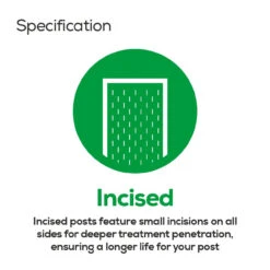 This FSC-certified UC4 treated wood fence post was sustainably sourced and Green Treated, making it ideal for ground contact in fencing. This timber was incised throughout the production process to extend the fence post’s durability. This is the procedure of piercing the wood on all sides with sharp teeth to allow the preservation chemicals to enter more effectively.