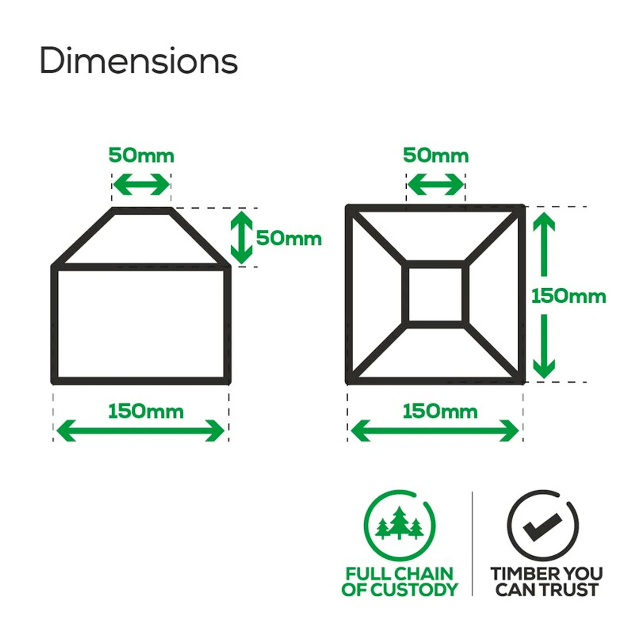 Incised Fence Post UC4 Treated Green Sawn Diamand Top (4 Way) FSC 150 X 150mm