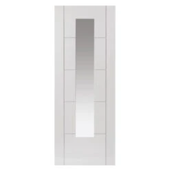 Modern white clear glazed internal door with grooved panel effect, supplied pre-finished