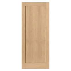 Shaker style oak internal door with one recessed panel, supplied unfinished