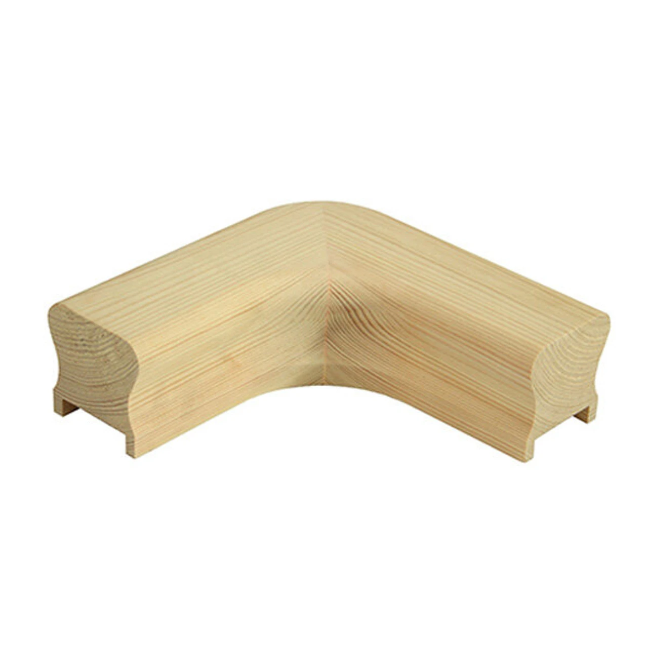Trademark pine handrail horizontal turn for landings. Enables handrails to revolve at 90.
