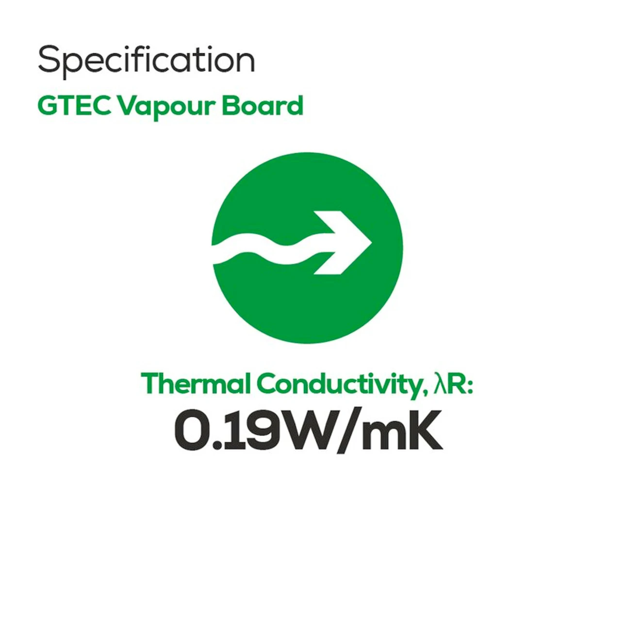 GTEC Standard Board with an additional laminated vapour control layer. The GTEC vapour board has the same physical property as the standard board but has a silver metallised polyester film back liner which enhances the vapour resistance of the product. GTEC Vapour can be jointed and finished with GTEC Jointing Systems. The boards require priming with GTEC Universal Sealer prior to decorating.