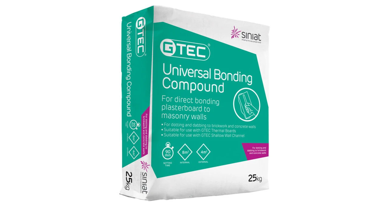 Universal Bonding Compound 25kg Gypsum based compound for direct bonding plasterboard to walls or bonding GTEC Metal Furring Wall Channels to walls.