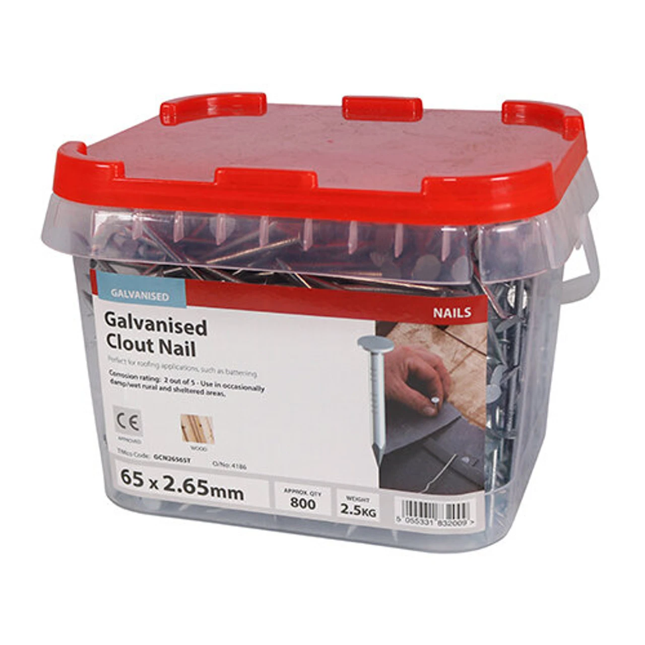 Timco’s Clout Galvanised Nails are ideal for use on terracotta and clay-tiles, plus a range of roofing and cladding materials. These nails, which boast a corrosion rating of 2- occasionally damp/wet, rural and sheltered areas, are manufactured using galvanised carbon steel and conforms to Eurocode 5 and service class 2 & BS EN 14592:2008