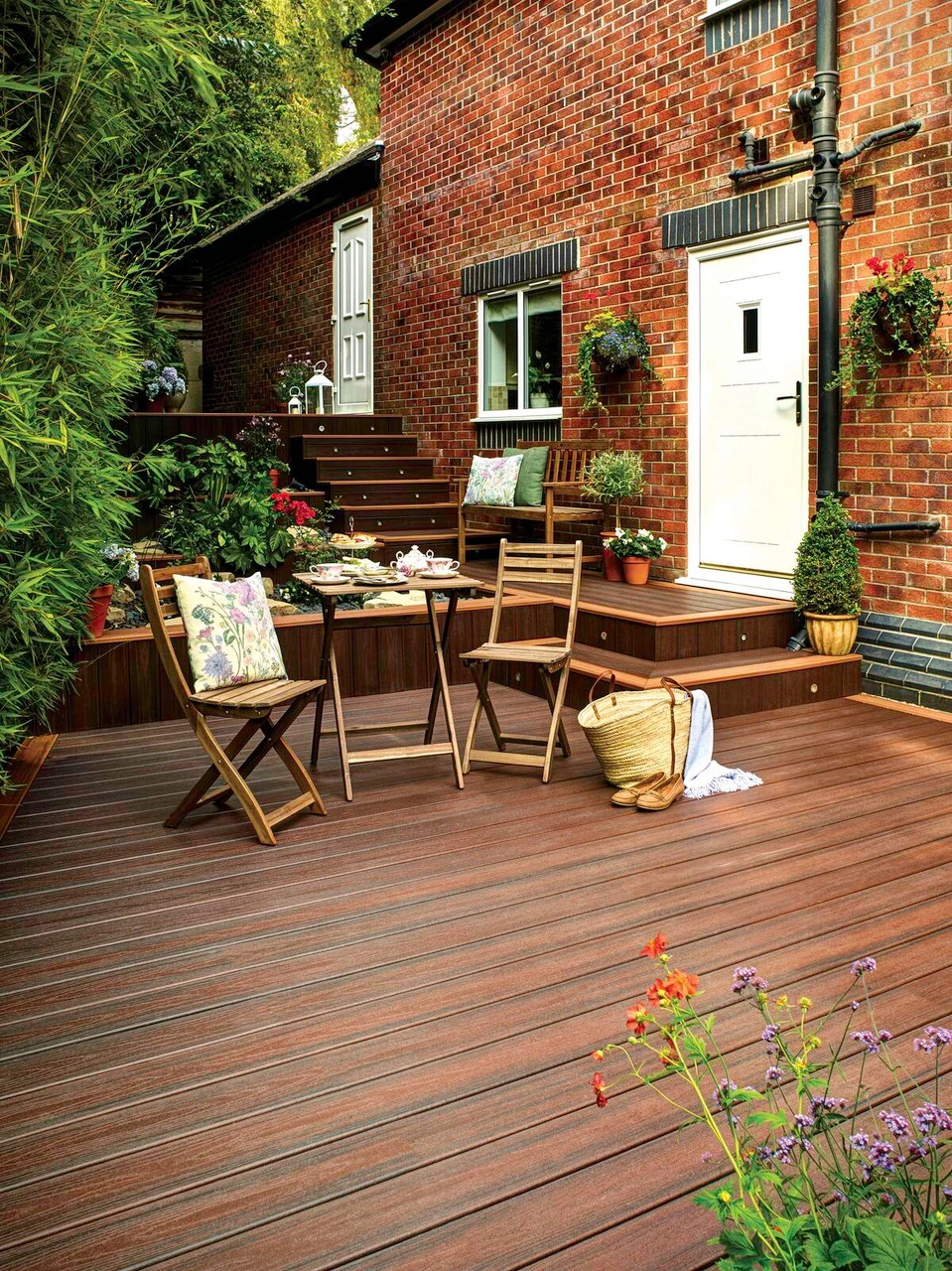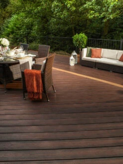 TREX Transcend decking’s deep wood-grain pattern and luxurious colours give it a premium, timeless appearance that sets it apart from other composites. Rich, fade-resistant colours resemble the look of natural wood while requiring little maintenance. For lengthy, hot summer barbecues, the reddish black timber striping offers a rich and evocative setting.
