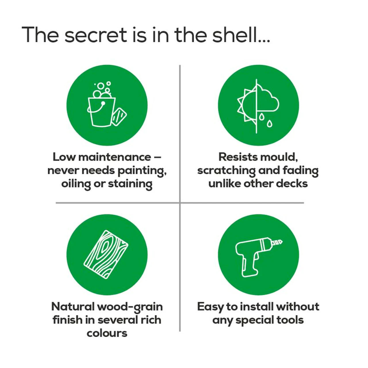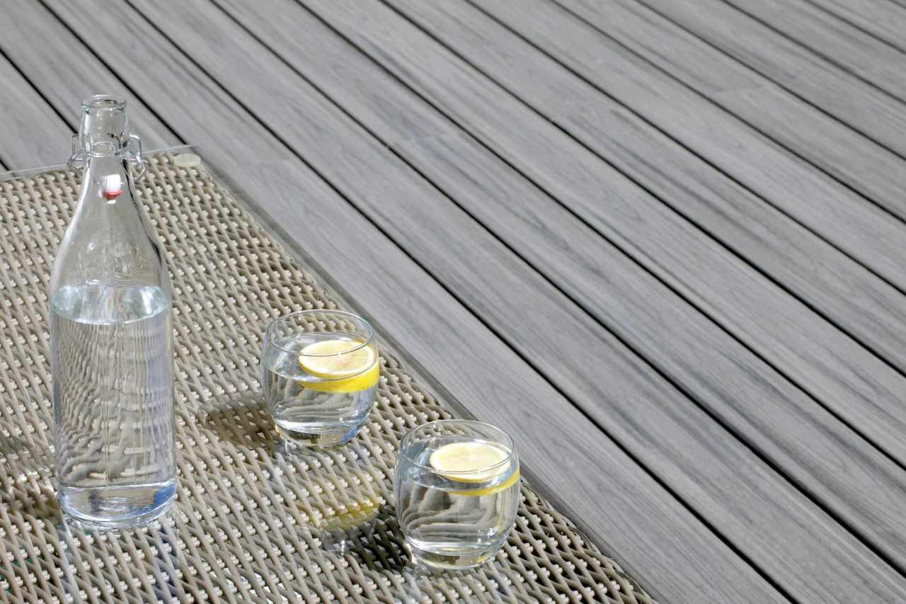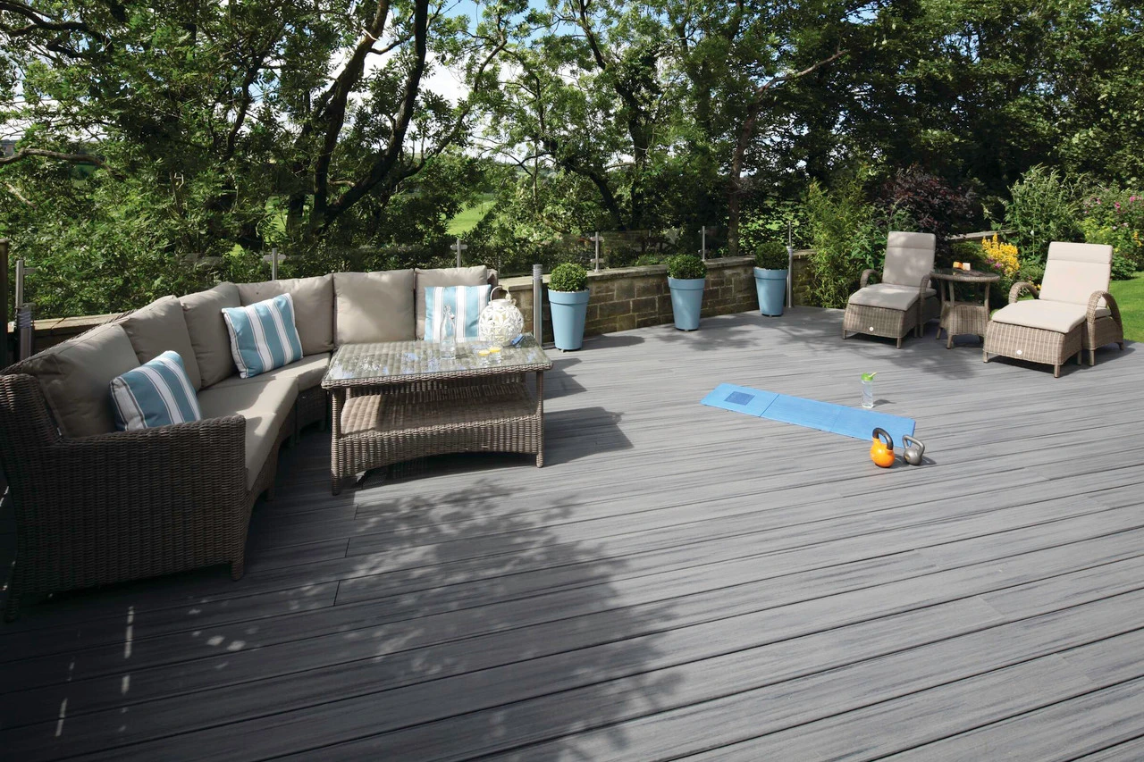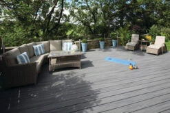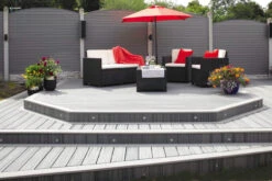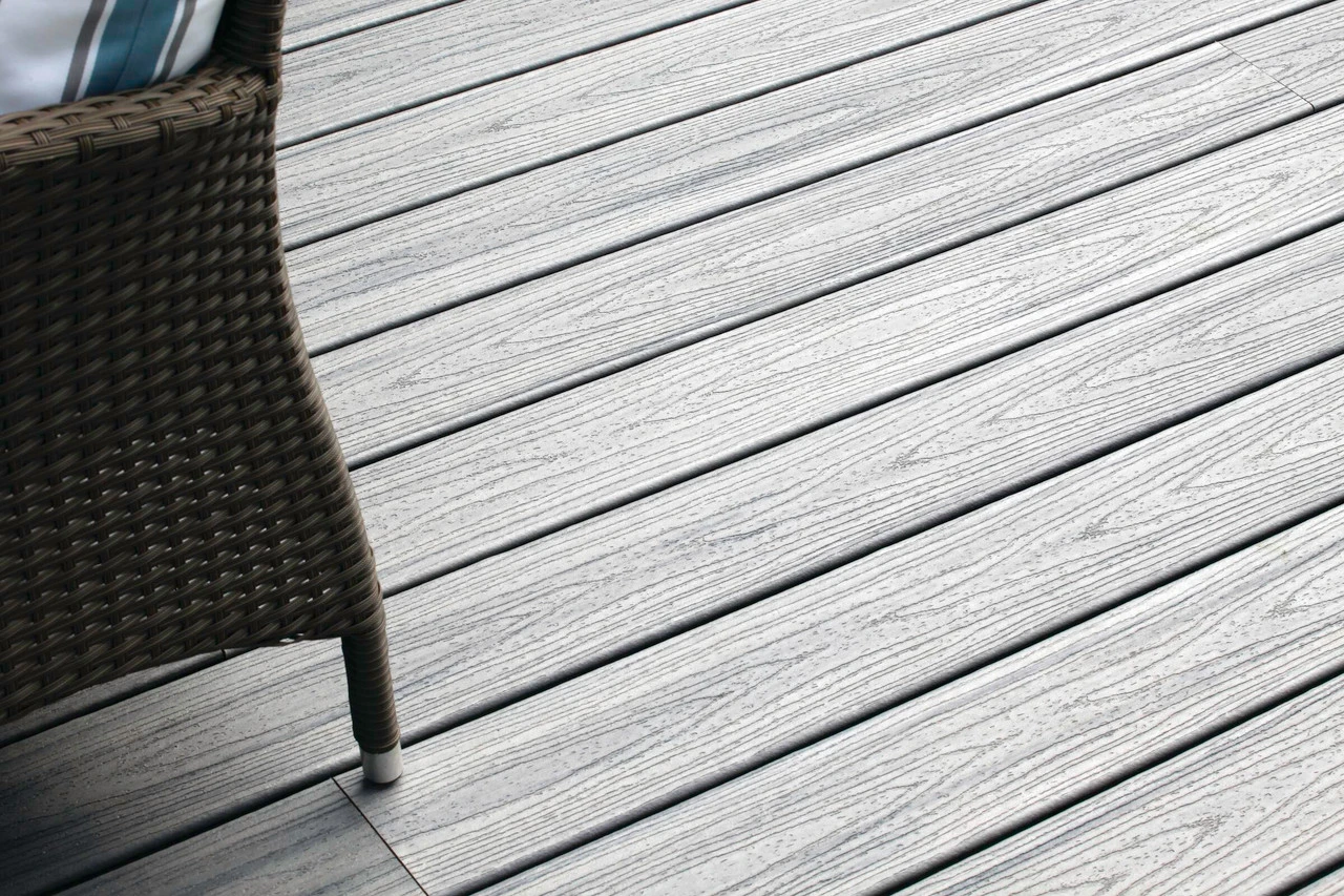 The Grooved Boards are part of the Trex Transcend range of decking. Available in Island Mist, these decking boards are strong with a natural silver colouring.