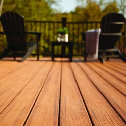 The Grooved Board in Tiki Torch is a part of Trex’s Transcend range of decking. Tiki Torch is a beautifully earthy shade with streaking designed to resemble red-brown hardwood.
