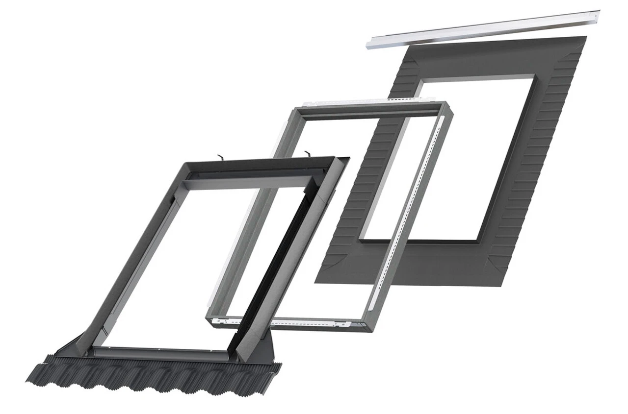 VELUX replacement flashings make it easy to replace VELUX roof windows without removing the existing lining. The roof windows are simply replaced in the existing aperture. This lets you enjoy a new window without the extra work involved in interior decoration or bathroom retiling. EW replacement flashing kit for replacing single roof windows in tiles up to 120mm thick. Includes BDX insulation collar for optimum energy efficiency.