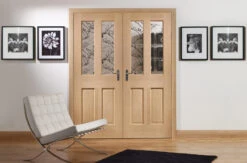 A traditional internal rebated unfinished oak door pair with clear bevelled glass. The Malton rebated door pair uses the classic twinlight design of the standard malton oak door in the collection, including the stylish clear bevelled glass and raised and fielded panels. The look and feel of this door design perfectly offers a truly elegant look that would complement any home. Supporting panelled, fire and bi-fold doors complete the range.