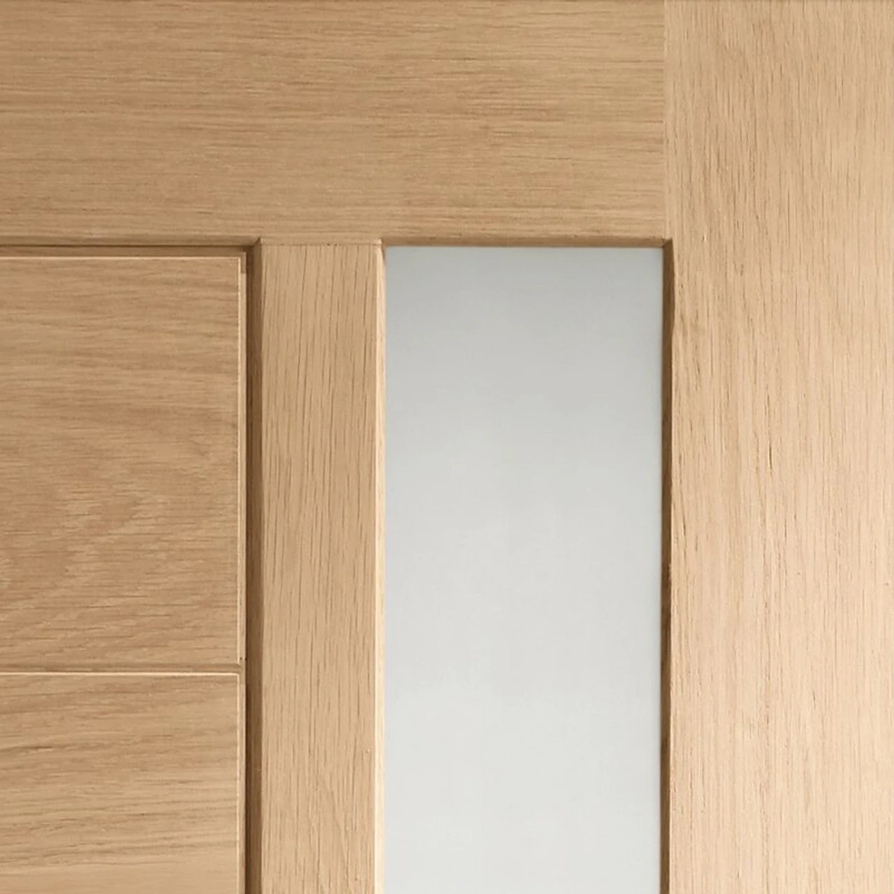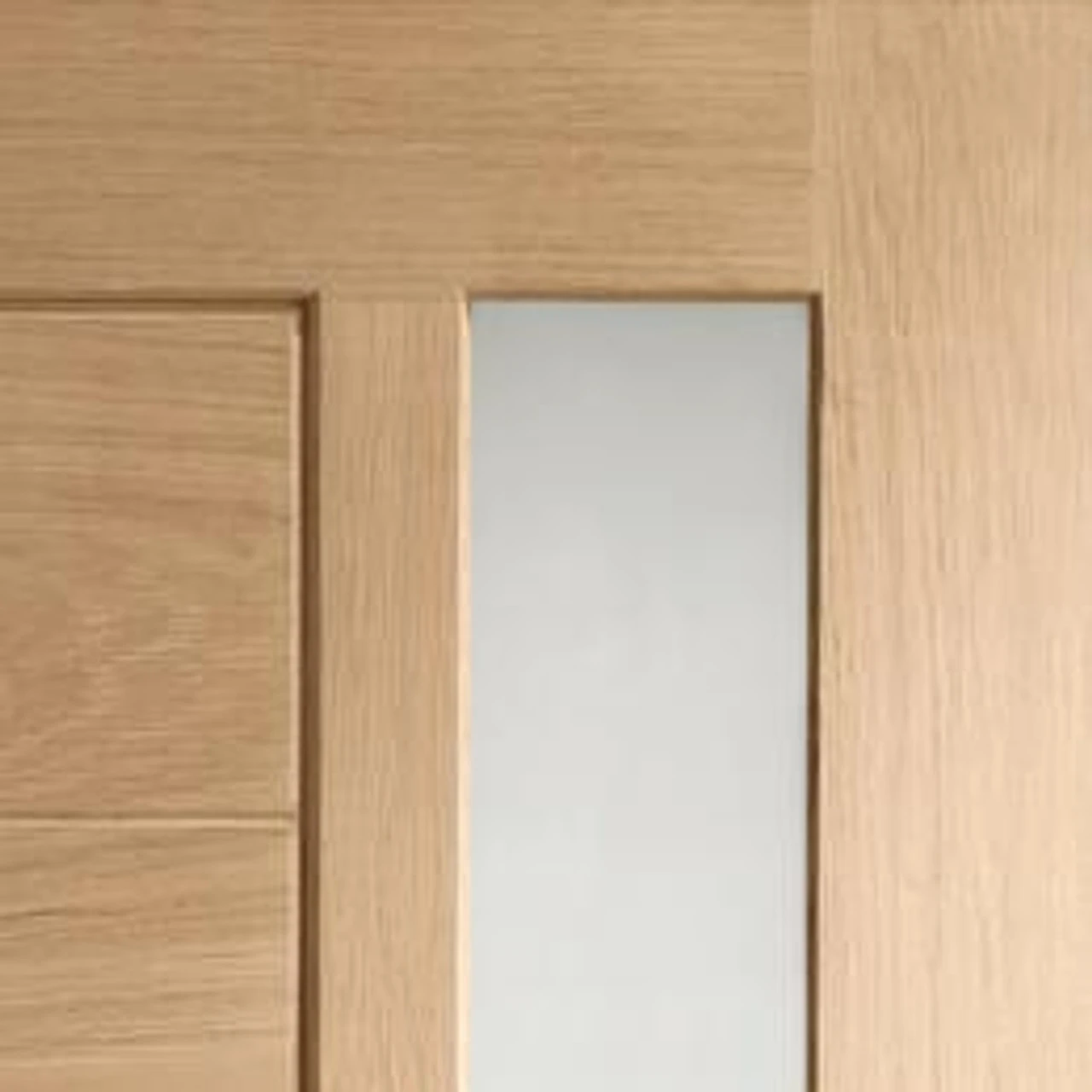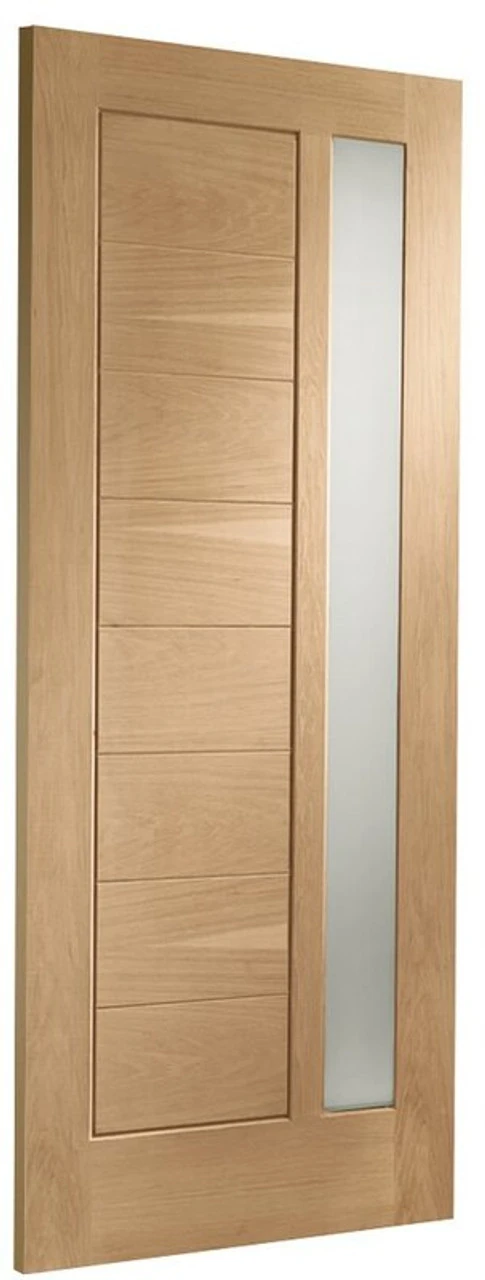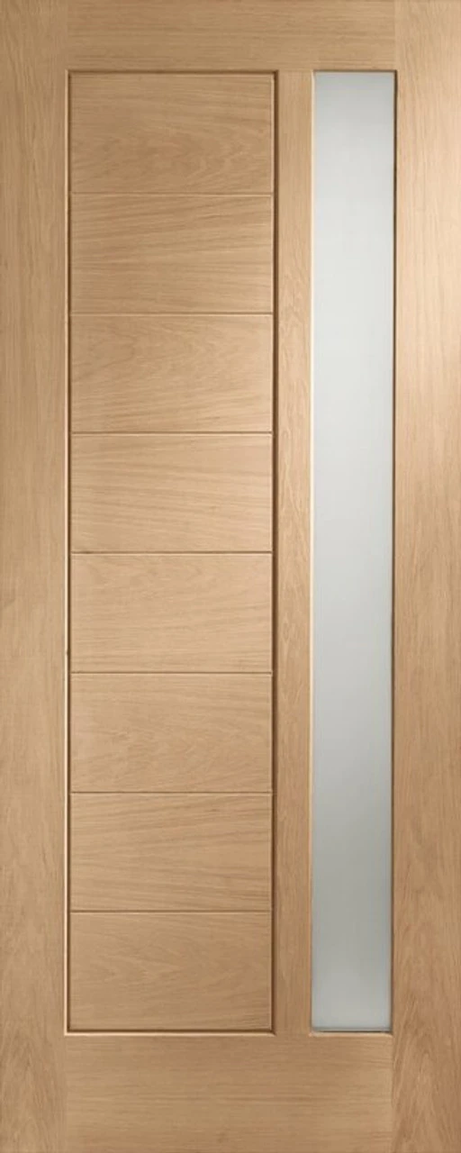 Combining contemporary horizontal panels with a large pane of obscure glass help gives the Modena Hardwood Glazed door a uniquely current look that would complement any modern home. The obscure glazed panel allows daylight to flow into the hallway without compromising any privacy.