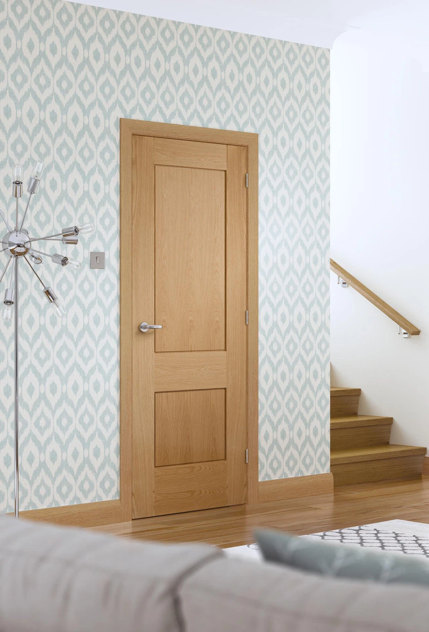 A stylish 2 panelled oak door using deep u-grooves. A striking internal oak door that features a deeper u-groove design. This style of door can complete the look in any home as the Piacenza unique features offer a real dimension and stunning elegant design.