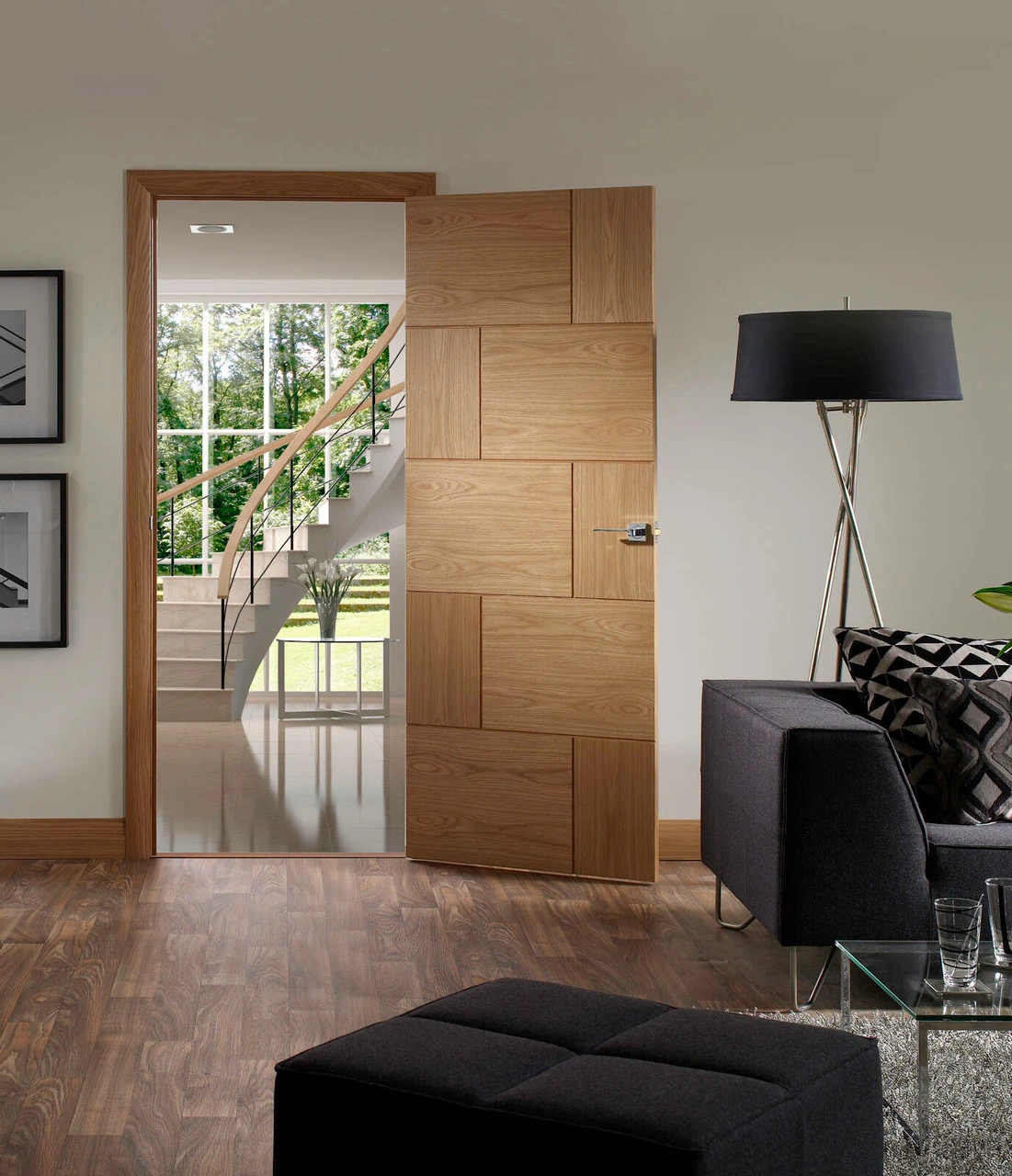 A cutting edge fully finished oak door combining horizontal and vertical oak grain. A cutting edge door the Ravenna Oak blends horizontal and vertical oak grain beautifully to create a real show stopper of a door. Supplied with an attractive clear finish designed to bring out the natural beauty of the oak veneer. This truly is a door that would look beautiful in any setting. A matching glazed door completes the range.