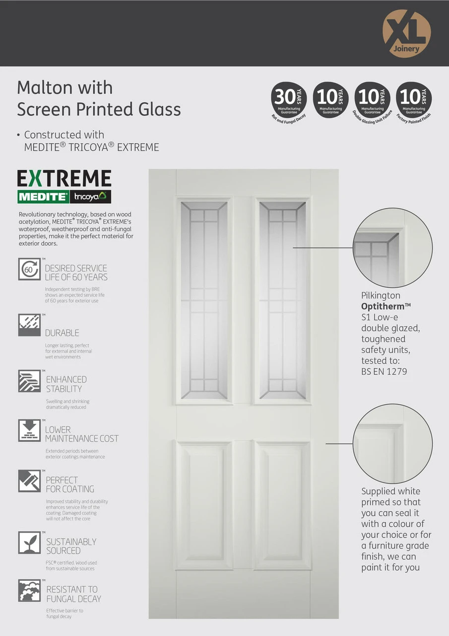 XL Tricoya Malton External Double Glazed Door With Decorative Glass 1981 X 838 X 44mm (33”)